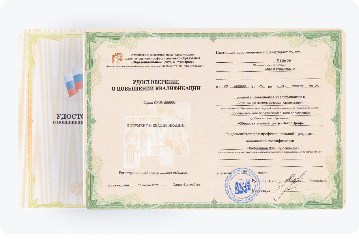 По завершении программы и успешного прохождения аттестации слушатели получают удостоверение о повышении квалификации (УПК). Эта официальная бумага подтверждает освоение новых компетенций и повышение уровня профподготовки, что является важным преимуществом при трудоустройстве или продвижении по карьерной лестнице.